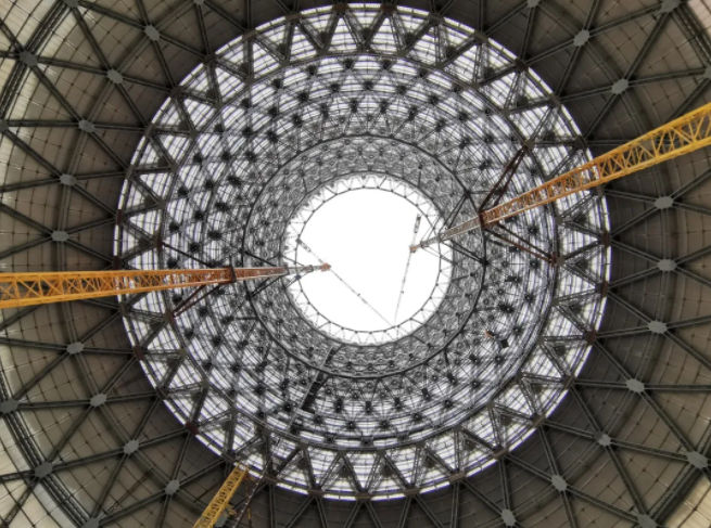 圖為間冷塔底部中心仰拍