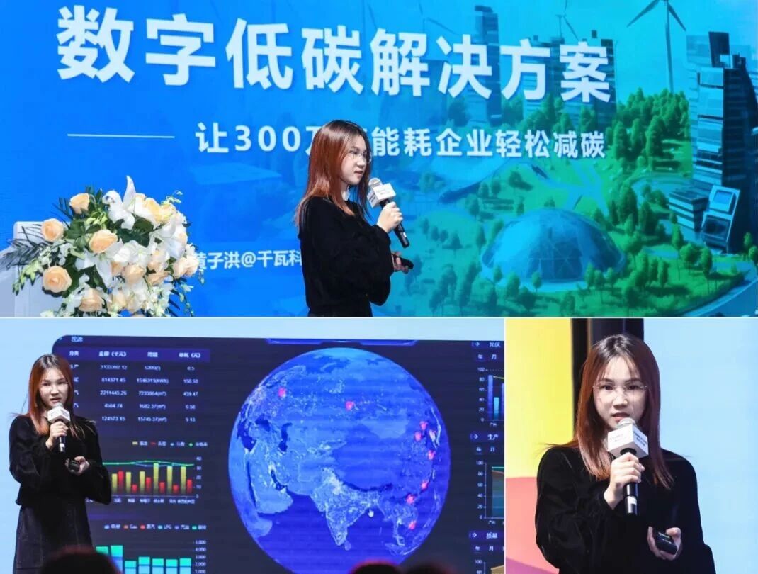 活動(dòng)現(xiàn)場(chǎng),千瓦科技的黃子洪女士登臺(tái)分享,以“數(shù)字低碳解決方案”為主題,深入剖析了當(dāng)前產(chǎn)業(yè)低碳轉(zhuǎn)型面臨的痛點(diǎn)與挑戰(zhàn),并結(jié)合公司實(shí)踐案例,系統(tǒng)闡述了千瓦科技在數(shù)字技術(shù)與低碳發(fā)展融合方面的創(chuàng)新成果。
