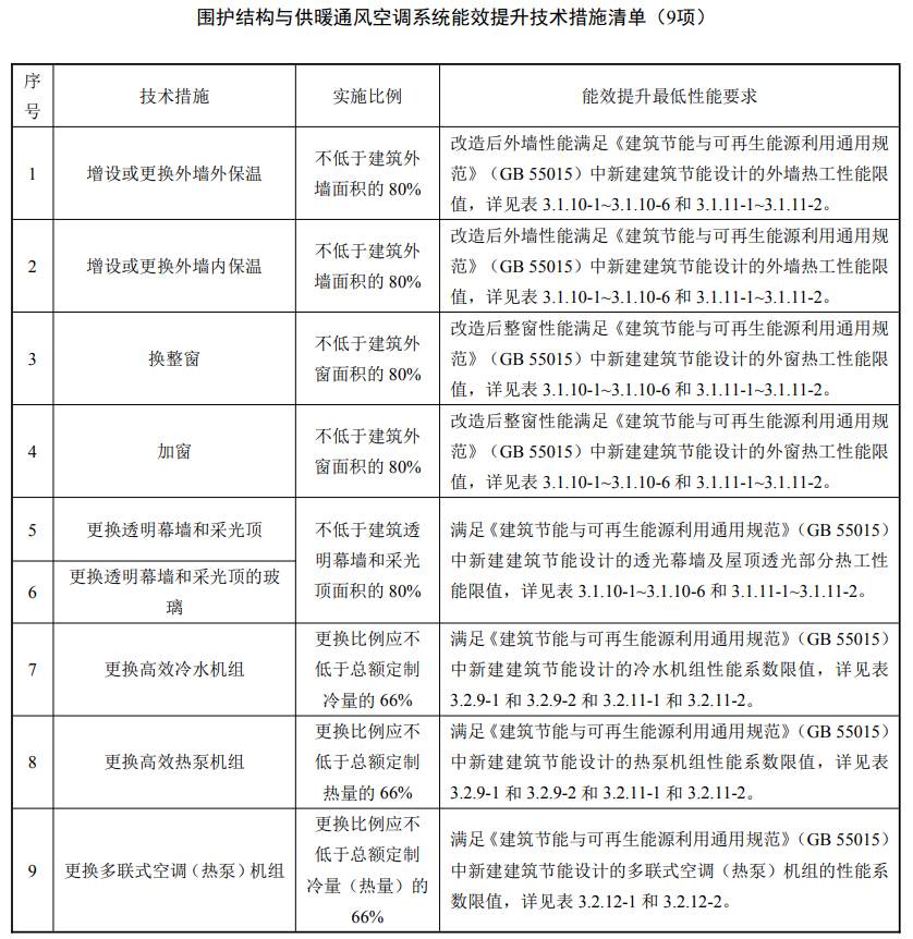 建筑在基準期和計入期內的使用功能一致; 基準期內建筑除中小學及幼兒園項目 1 月、2 月、7 月、8 月外,每月使用時間不少于 160 小 時(h); 項目改造前的節(jié)能設計應符合《公共建筑節(jié)能設計標準》(GB50189)或《建筑節(jié)能與可再生能源利用通用規(guī)范》(GB55015); 能效提升技術措施應包含附錄A中至少一種技術措施,并滿足實施比例和能效提升最低性能要求;