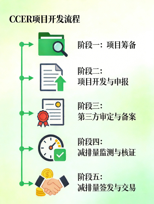 提交簽發(fā)申請及相關材料接受專家評估,通過后在全國碳排放權注冊登記系統(tǒng)完成登記;憑電子憑證在合規(guī)平臺掛牌交易,交割后兌現(xiàn)CCER收益。