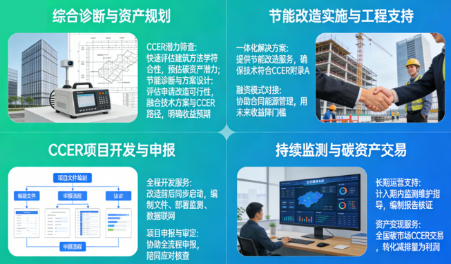 優(yōu)勢與行動:可全流程統(tǒng)籌碳資產(chǎn)開發(fā)與節(jié)能改造,實現(xiàn)改造成本與碳收益最優(yōu)匹配。重點是先完成建筑能耗診斷與碳減排規(guī)劃,同步設計監(jiān)測 + 改造一體化方案。