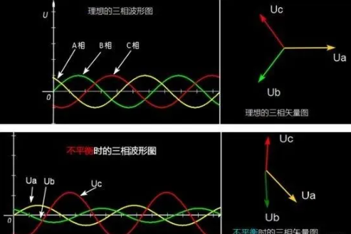 理想的三相波形圖與不平衡時的三相波形圖