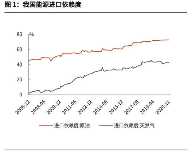 站在全球視角,我們認為中國加快“碳達峰、碳中和”主要基于以下三方面推動:(1)“碳中和”是中國經濟的內在需求——能源保障、產業轉型在能源保障方面:2020 年底,我國原油進口依賴度達 73%,天然氣進口依賴度 也在 40%以上;基于能源保障考慮,發展新能源具有必要性。與此同時,我國 已在新能源領域建立起全球優勢。根據麥肯錫測算,我國在太陽能電池板領域的 國家表現遠超美國,在所有行業對比中位列第一。