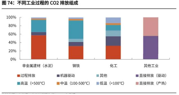 除了能源使用(主要是化石燃料燃燒及電力/熱力使用),工業過程碳排放也是 重要的二氧化碳來源,2017 年占比 13%。工業過程碳排放與各個行業采用的生產工藝直接相關。(1)如鋼鐵行業:含碳原料(電極、生鐵、直接還原鐵)和溶劑的分解和氧化;(2)電解鋁:碳陽極消耗、陽極效應導致全氟化碳排放;(3)水泥:污水污泥等廢棄物里所含有的非生物質碳的燃燒、原材料碳酸鹽分 解產生的二氧化碳排放、生料中非燃料碳煅燒。相比于“能源碳”,“過程碳”的去除更加困難。原因在于:(1)生產工藝深度整合,對工藝過程的某一部分的改變都伴隨著過程其他部分 的改變;(2)生產設施的使用壽命很長,通常超過 50 年(定期維護)。改變現有場地 的工藝需要昂貴的重建或改造;(3)大宗商品全球交易,水泥、鋼鐵、氨和乙烯是大宗商品,在采購決策中, 成本是決定性因素。除水泥外,這些產品都在全球范圍內進行交易。一般來說, 在所有四個部門中,外部性都沒有被考慮在內,而且還沒有為可持續或脫碳產品 支付更多費用的意愿。