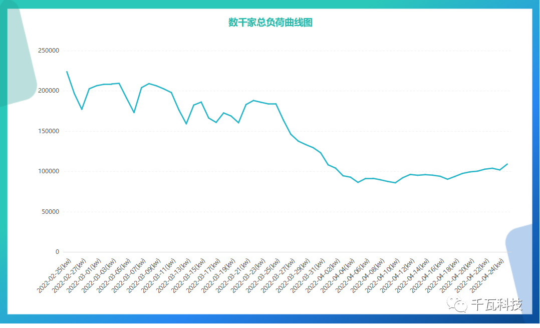 由上圖得知從3月25日開始一直到4月10日總負荷基本呈下降趨勢,4月10日總負荷降到了最低點85877.96kW。
