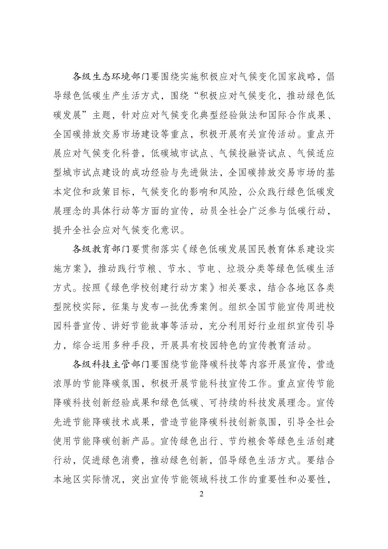 一、今年全國節能宣傳周定為7月10日至16日,活動主題是“節能降碳,你我同行”。全國低碳日定為7月12日,活動主題是“積極應對氣候變化,推動綠色低碳發展”。