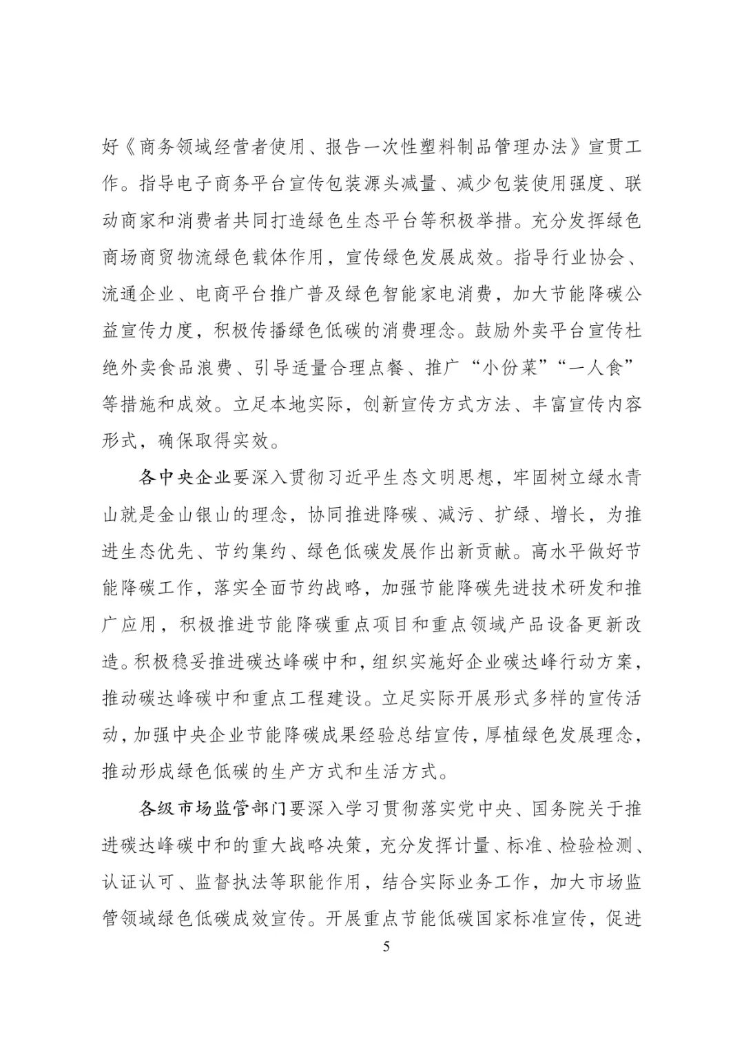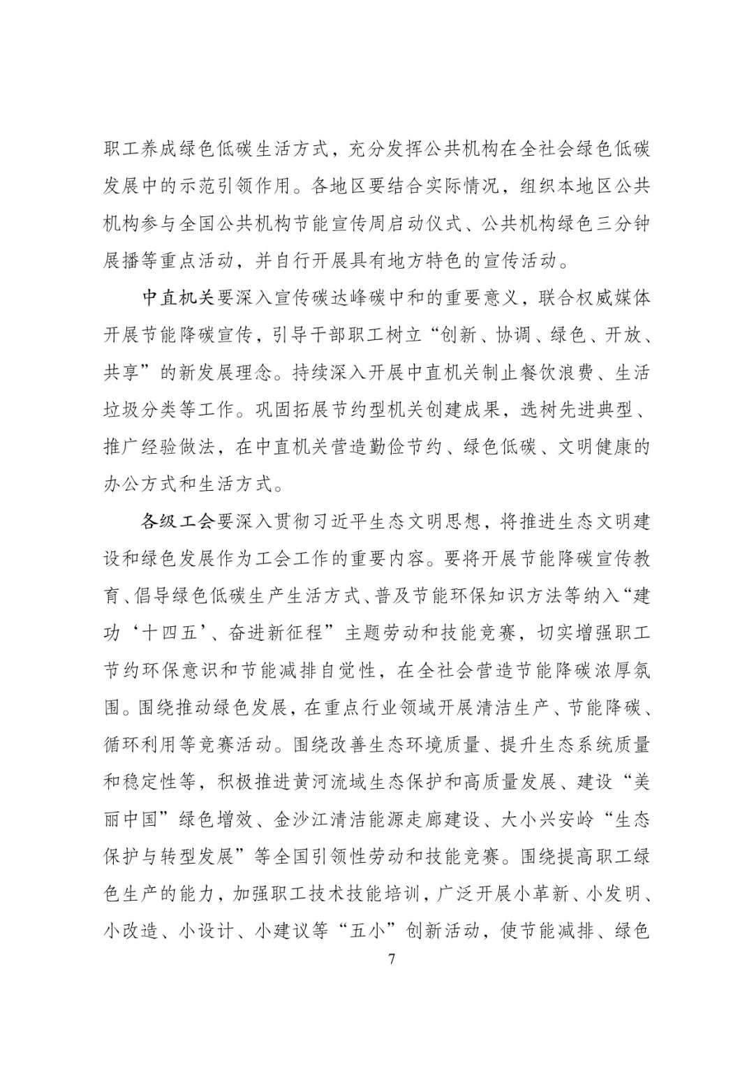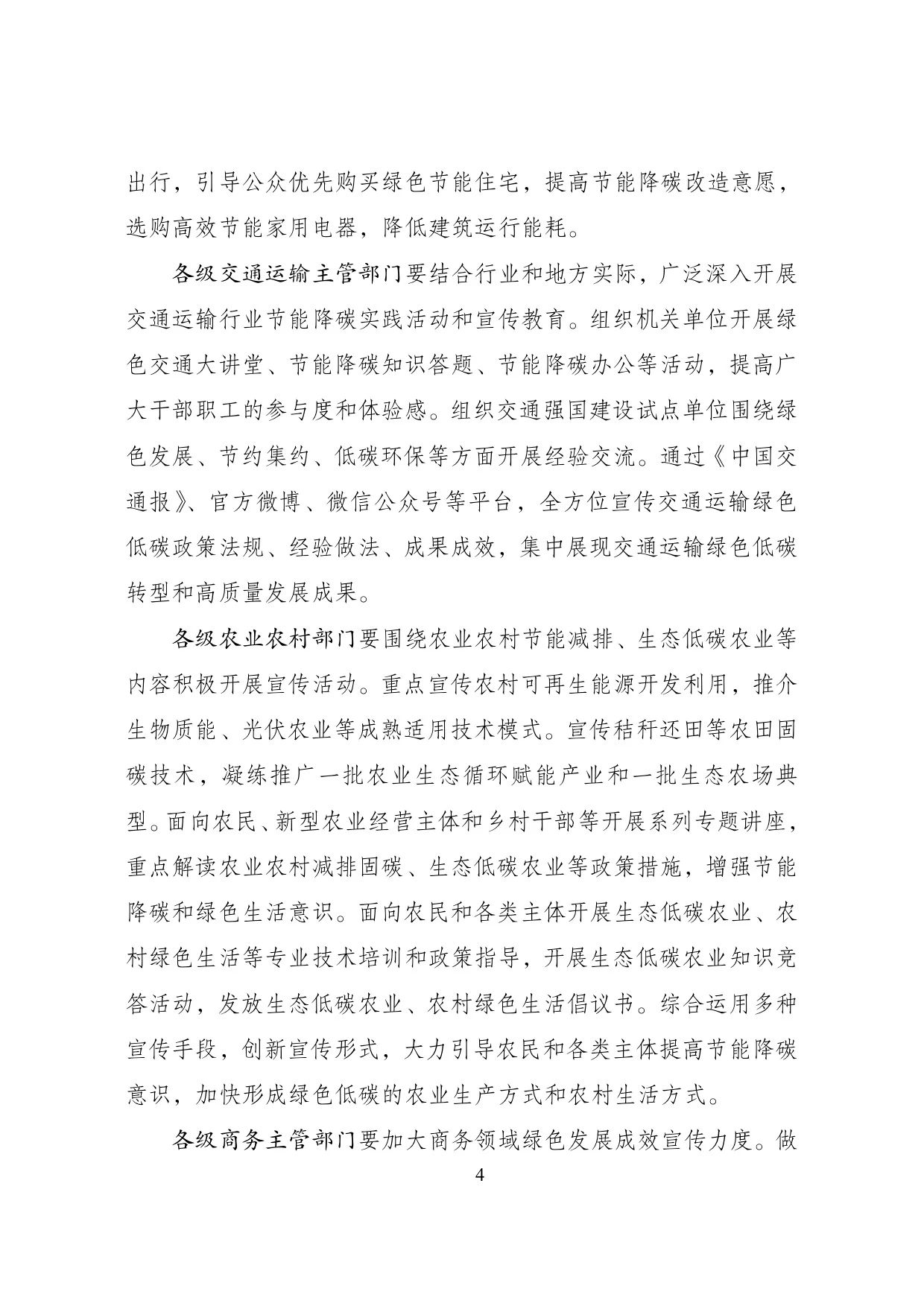 五、各地區節能宣傳周和低碳日活動牽頭部門要切實加強統籌協調,會同聯合主辦部門和單位做好本地區節能宣傳周和低碳日活動的組織工作。聯合主辦、參與部門和單位要積極做好協同配合,組織本系統力量圍繞宣傳重點開展各類宣傳活動。要豐富宣傳形式,靈活采用線上線下相結合方式,積極開展節能降碳先進經驗和典型案例推廣、節能降碳知識科普、綠色消費引導、綠色低碳出行等宣傳活動,動員社會各界廣泛參與節能宣傳周和低碳日活動。