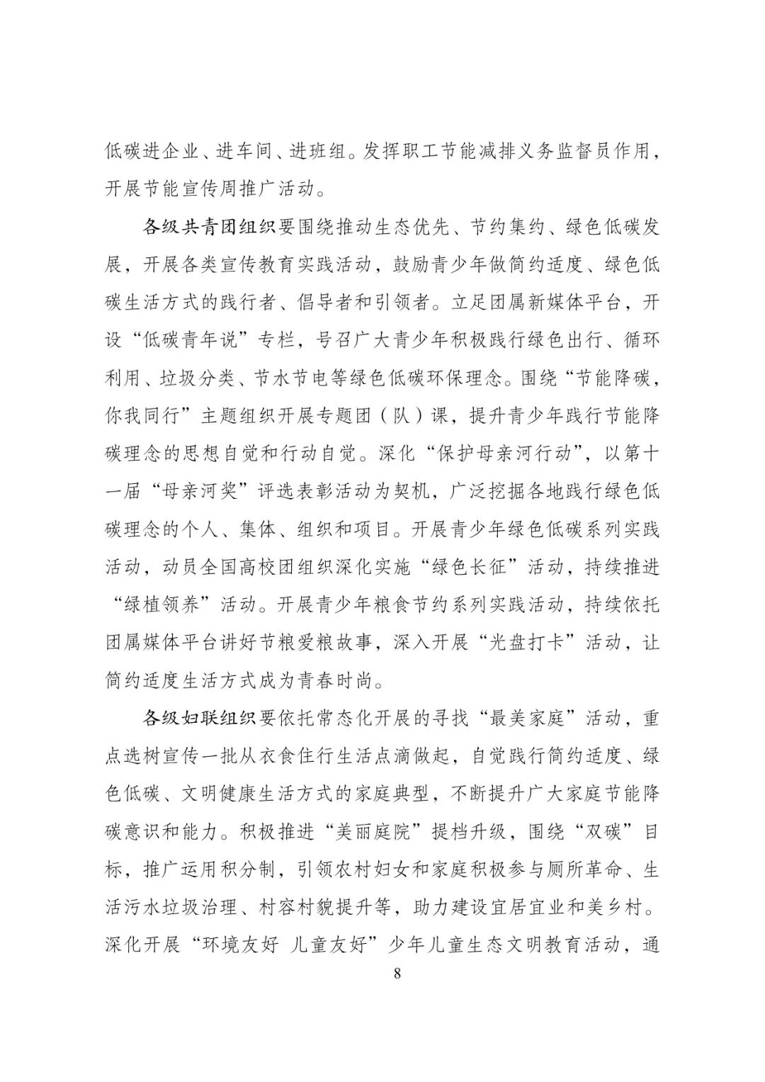 各省、自治區、直轄市及計劃單列市、副省級省會城市、新疆生產建設兵團發展改革委、生態環境廳(局)、教育廳(教委、教育局)、科技廳(委、局)、工業和信息化主管部門、住房和城鄉建設廳(委、管委、局)、交通運輸廳(局、委)、農業農村(農牧)廳(局、委)、商務主管部門、國資委、市場監管局(廳、委)、廣電局、機關事務管理部門、總工會、團委、婦聯,山西省能源局,軍隊各有關單位: