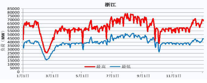 工作日典型負荷曲線 | 上班時間 | 浙江普遍在6:00到8:00開始上班 |