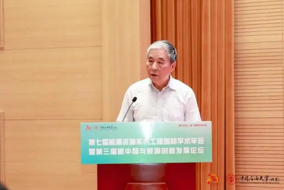 國家氣候變化專家委員會名譽主任、科技部原副部長劉燕華作大會報告。中國石油大學(北京)供圖