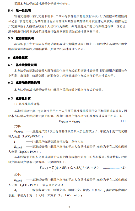 3.《上海市碳普惠減排場景方法學 軌道交通