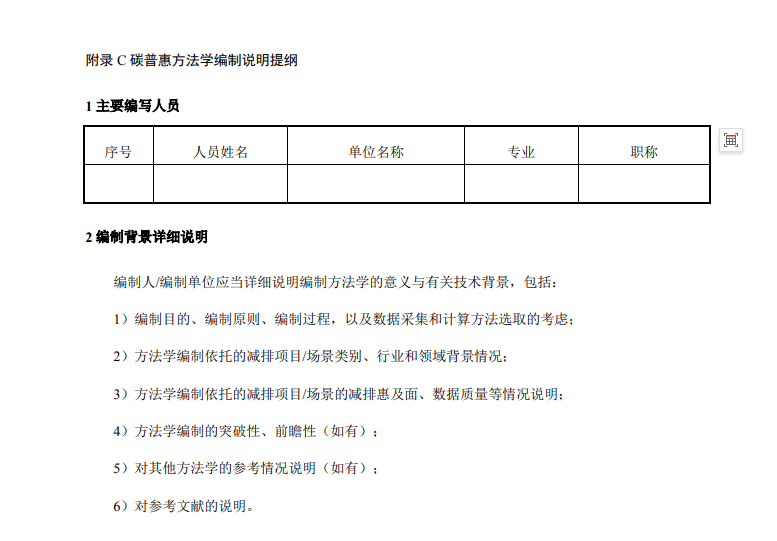 從事相關領域方法學研究,具備方法學編制技術條件,有溫室氣體自愿減排或碳普惠相關工作實踐經驗的機關、企事業單位、社會團體、其他社會組織、個人等。