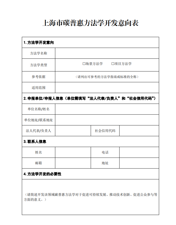 2、有申報意向但暫無完整方法學文本的,請填寫《上海市碳普惠方法學開發意向表》(見附件2)。