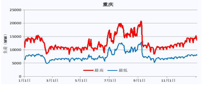 | 工作日典型負荷曲線 | 上班時間 | 重慶普遍在8:00以后開始上班 |