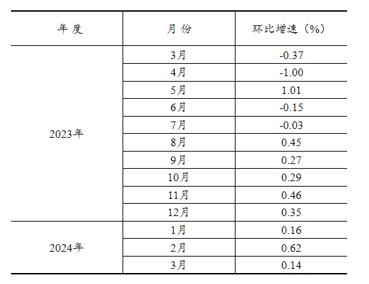 根據季節調整模型自動修正結果,對2023年3月份以來的固定資產投資(不含農戶)環比增速進行修訂。修訂結果及2024年3月份環比數據如下: