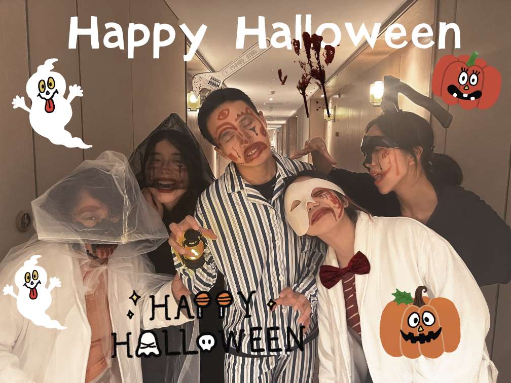 到了目的地,辦理酒店入住,放下行囊,首要任務(wù)當(dāng)然是一飽口福了。傍晚,我們?cè)诰频甑挠炅植蛷d就餐,恰逢萬圣節(jié)主題活動(dòng),于是美食的氛圍感拉滿。