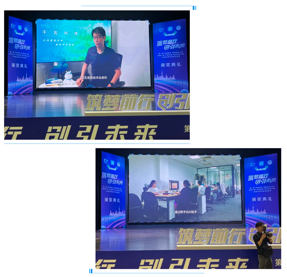 頒獎儀式前夕,浦東新區政府領導特別走訪了千瓦科技,進行了深入的專訪,了解了千瓦的創新實踐和產品成果,并在頒獎典禮上,播放了這段專訪視頻。領導的高度關注和支持,讓千瓦備受鼓舞。