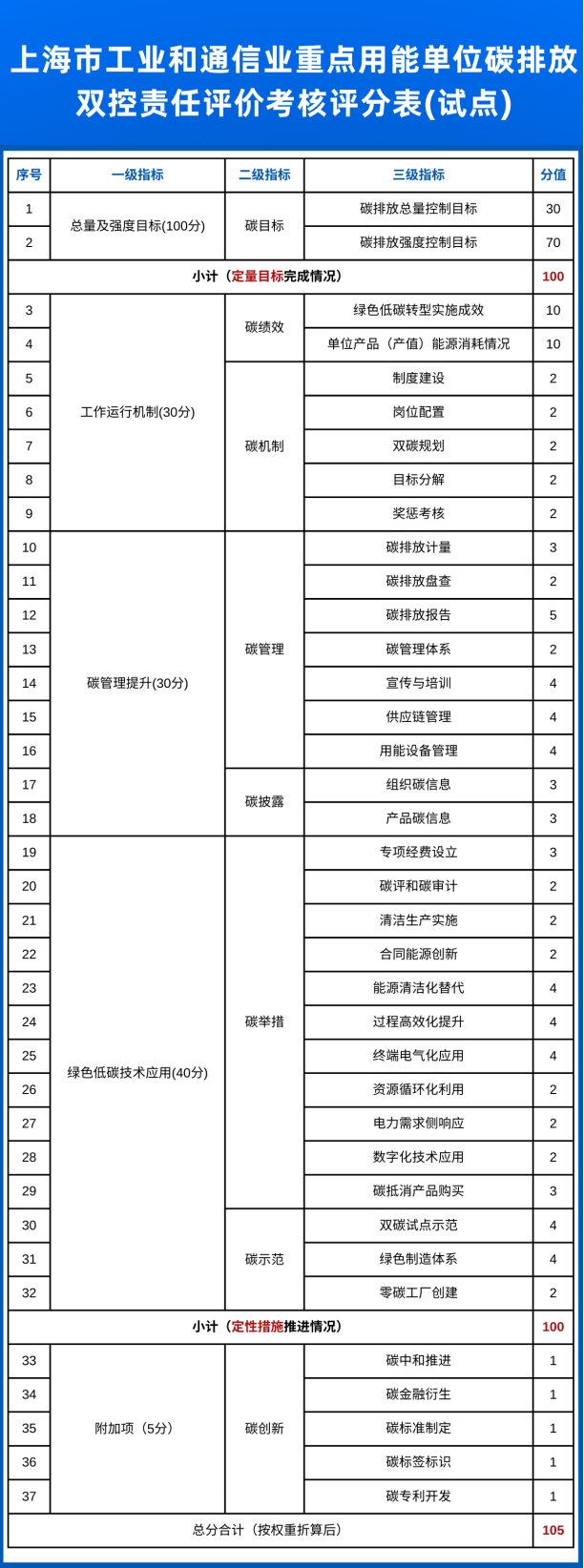 為全面貫徹新發展理念,推動產業綠色低碳發展,上海市經濟和信息化委員會今年印發了《關于開展2023年度工業和通信業重點用能單位碳排放雙控責任評價考核工作(試點)的通知》。