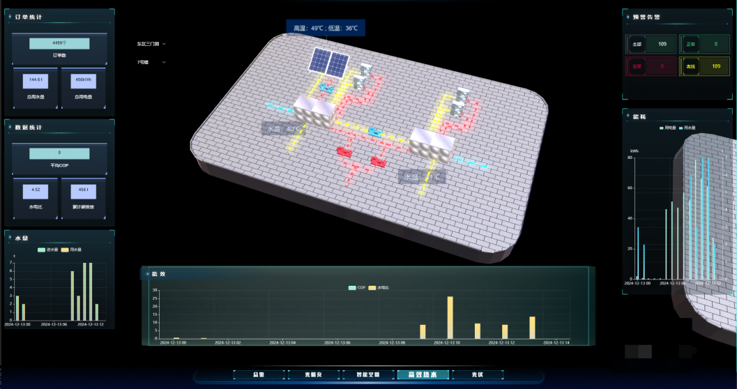 酒店傳統的燃氣鍋爐能耗太高,通過引入光伏光熱和空氣源熱泵系統,結合“雙水箱”模式,搭建高效熱水管理平臺,優化了能源使用效率,降低成本的同時又確保了熱水供應的穩定高效。
